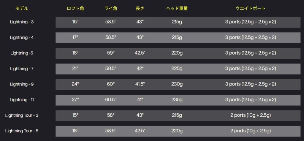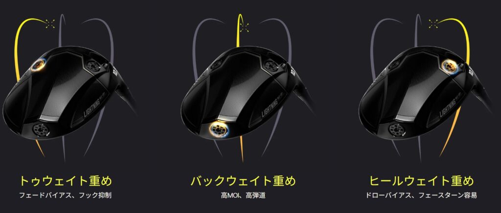 ライトニングドライバーは、インパクト時のボールの圧縮にクラブの固有振動数を同調させる設計でエネルギー伝達効率を最大化。